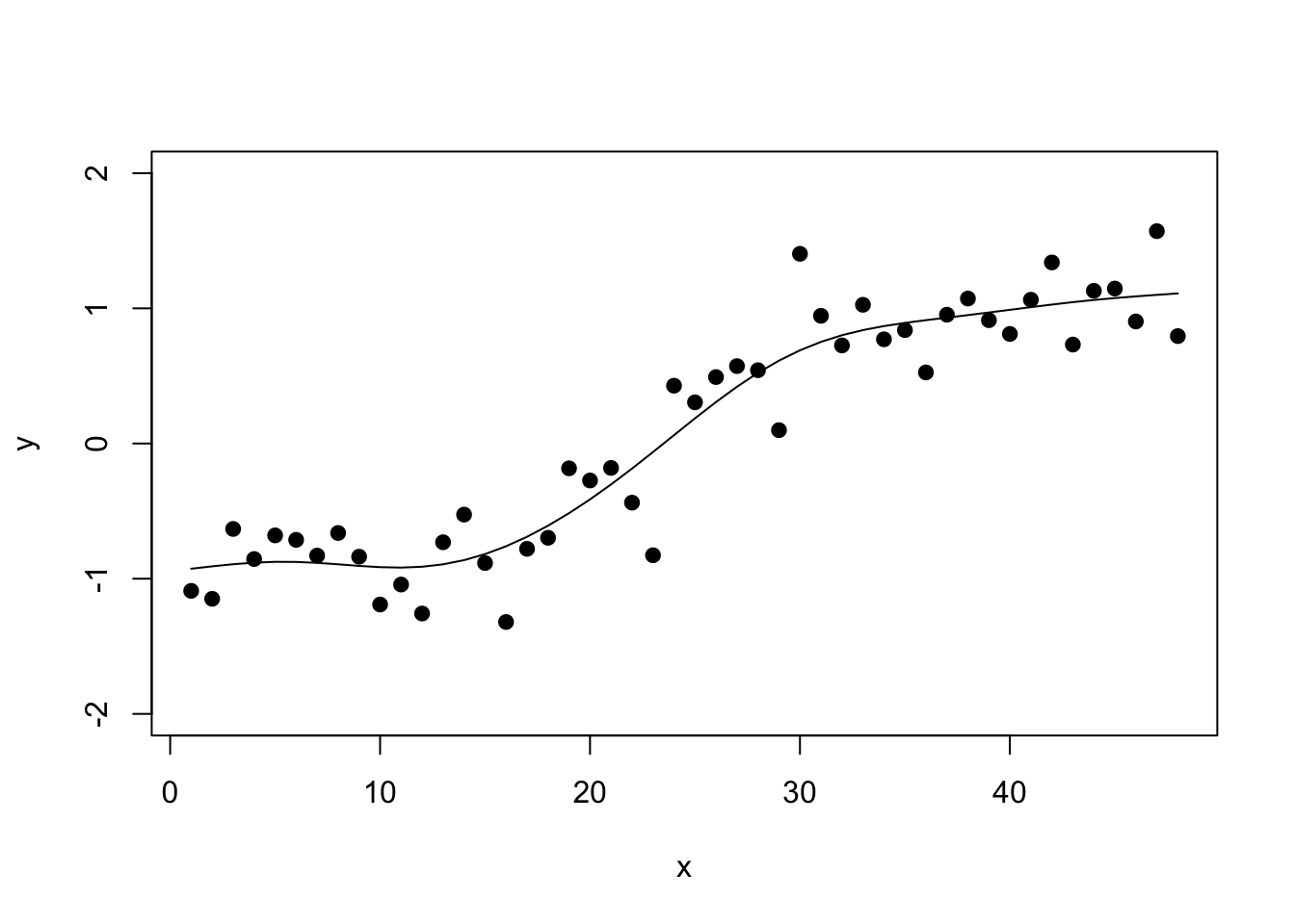 gam_fit <- mgcv::gam(y ~ 1 + s(x))
