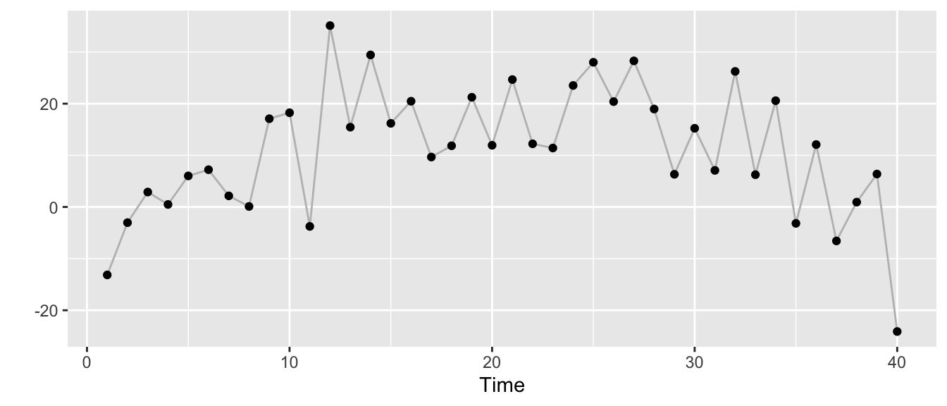 A little later that evening it hit me: I already know this! The model I was sketching is equivalent to the local-linear trend Bayesian structural time series model (Scott and Varian 2014)—which itself is equivalent to a dynamic linear model or a state-space model formulation. For the close cousin of the local-level model, look no further than me using it here.